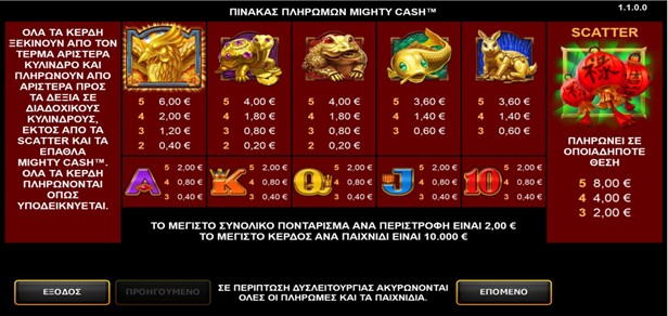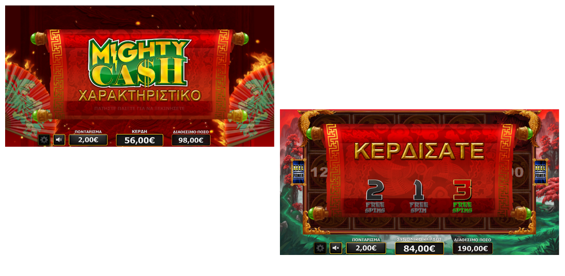 ο χαρακτηριστικό Mighty Cash μπορεί να ενεργοποιηθεί κατά τη διάρκεια των δωρεάν περιστροφών.