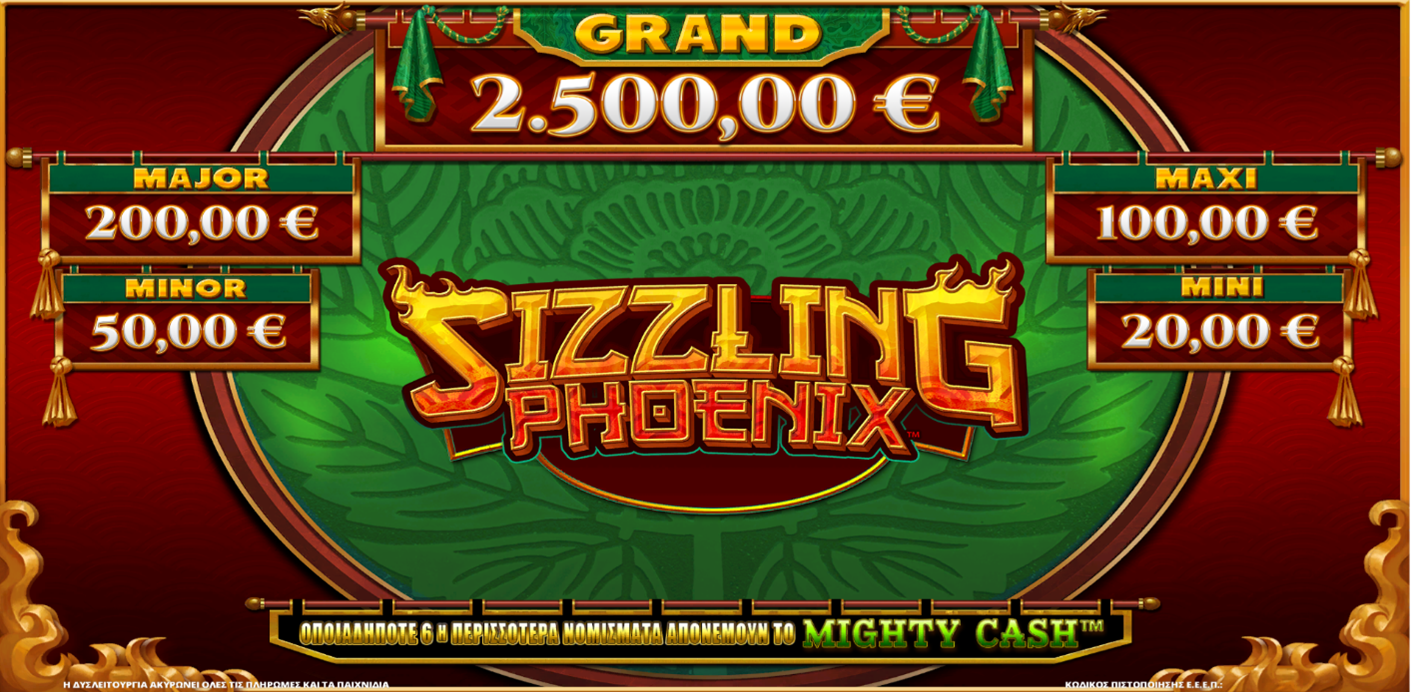 Το “Sizzling Phoenix” είναι ένα παιχνίδι με 5 κυλίνδρους και 243 τρόπους πληρωμής. Όλα τα κέρδη ξεκινούν από τον τέρμα αριστερά κύλινδρο και πληρώνουν από τα αριστερά προς τα δεξιά σε διαδοχικούς κυλίνδρους, εκτός από τα scatter και τα έπαθλα mighty cash. Κάθε σύμβολο
