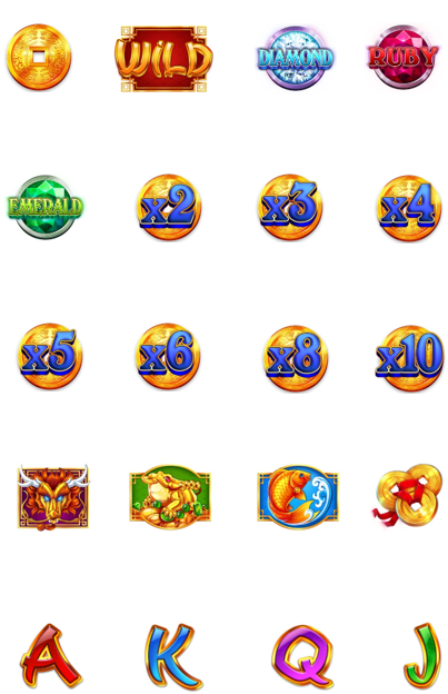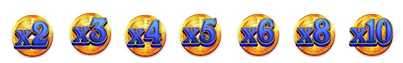 Τα σύμβολα Πολλαπλασιαστή πολλαπλασιάζουν όλα τα άλλα σύμβολα στον ίδιο κύλινδρο Χ2, Χ3, Χ4, Χ5, Χ6, Χ8 ή Χ10, τότε αυτά μετατρέπονται σε σύμβολα Bonus Διαμαντιού, Ρουμπινιού ή Σμαραγδιού.
