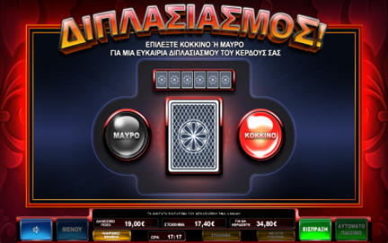 Πατώντας το πλήκτρο διπλασιασμού εμφανίζεται μια νέα οθόνη, οπού ο παίκτης μπορεί να επιλέξει ανάμεσα σε μια κόκκινη ή μια μαύρη κάρτα. Όταν ο παίκτης επιλέξει ένα από τα χρώματα, το παιχνίδι του διπλασιασμού αποκαλύπτει μια κάρτα και δείχνει το αποτέλεσμα του γύρου του παιχνιδιού. Αν αυτή η κάρτα έχει το χρώμα που επιλέχθηκε, το κέρδος διπλασιάζεται. Αν όμως η κάρτα δεν έχει το χρώμα που επιλέχθηκε, το συνολικό κέρδος χάνεται. Η πιθανότητα κέρδους είναι 50%.