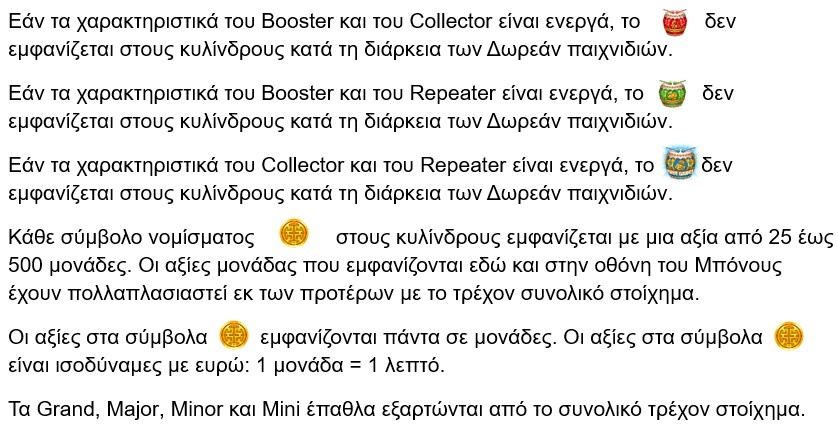 Το κέρδος δεν μπορεί να υπερβεί τα 10.000€ ανά αγορασμένο παιχνίδι. Αν φτάσετε το όριο, το αγορασμένο παιχνίδι τελειώνει αμέσως.
