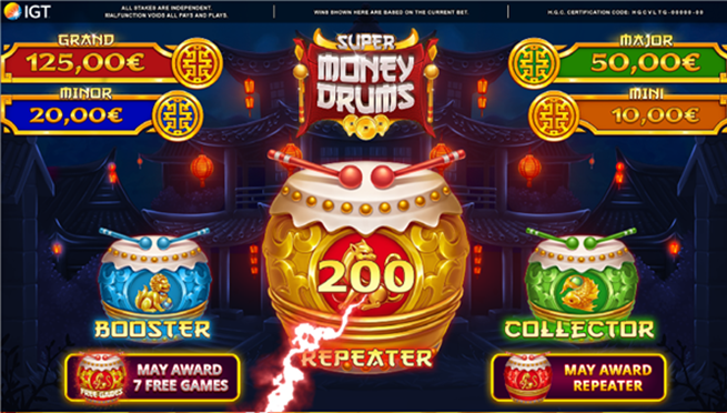 Το “Money drums” είναι ένα παιχνίδι με 5 κυλίνδρους και 30 γραμμές πληρωμής. Όλες οι πληρωμές αποδίδονται για όμοιους συνδυασμούς, ξεκινώντας από αριστερά προς τα δεξιά .Τα σύμβολα μιας νικηφόρας γραμμής πρέπει να εμφανίζονται σε διαδοχικούς κυλίνδρους, και να ξεκινούν από τον πρώτο κύλινδρο αριστερά. Μόνο το μεγαλύτερο κέρδος πληρώνεται ανά γραμμή πονταρίσματος.