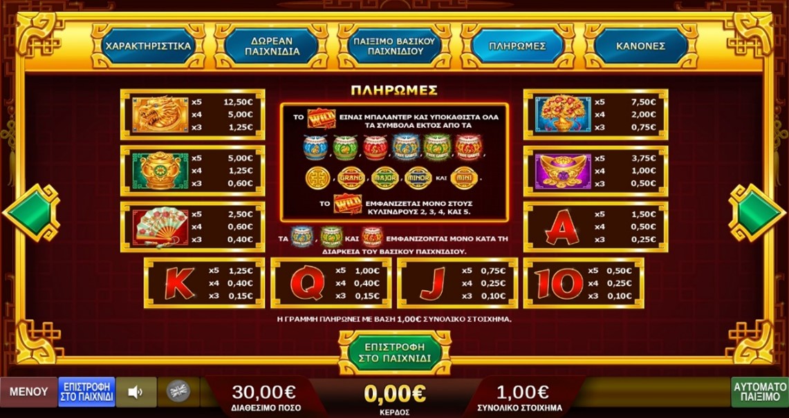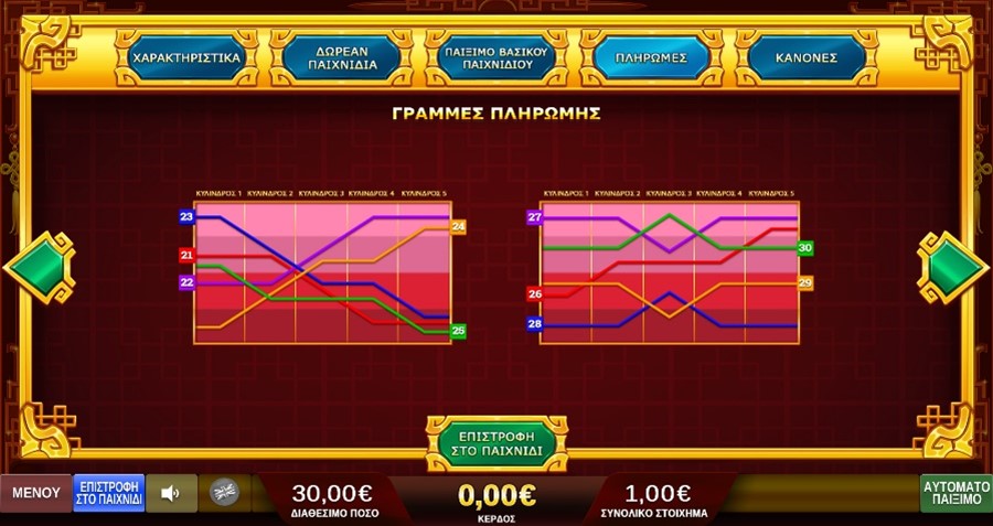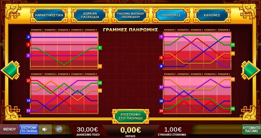 Το παιχνίδι παίζεται σε 30 γραμμές.
