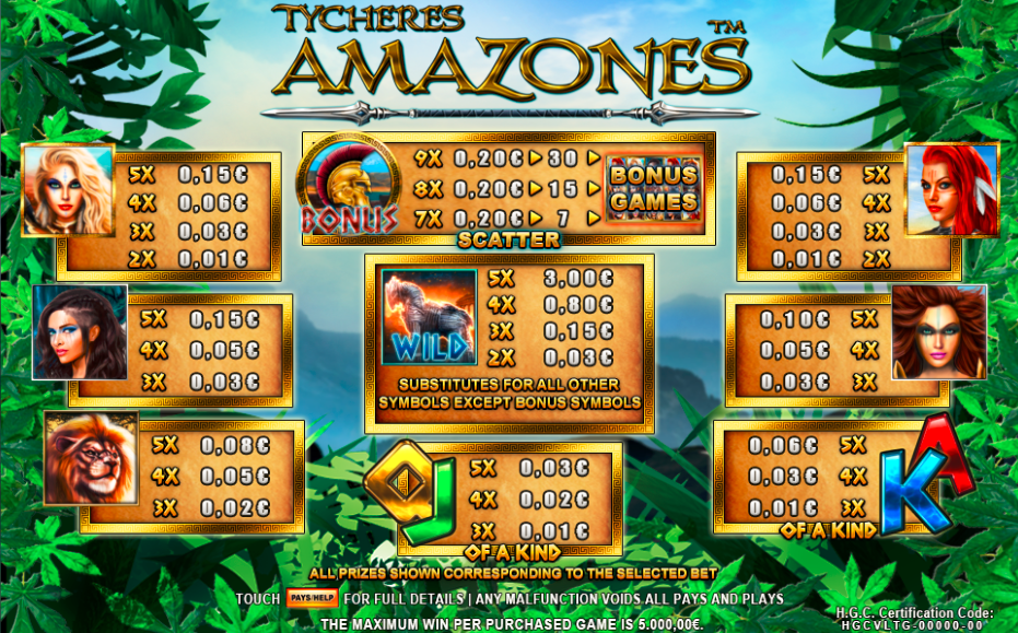 Οι “Τυχερές Αμαζόνες” είναι ένα παιχνίδι με 5 κυλίνδρους και 30 γραμμές πληρωμής.
