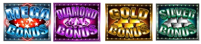 Σύμβολα MEGA, DIAMOND, GOLD και SILVER BONUS