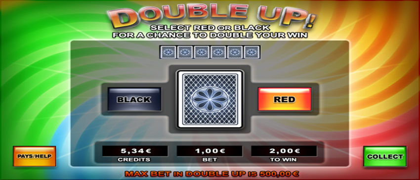 Πατώντας το πλήκτρο διπλασιασμού εμφανίζεται μια νέα οθόνη, όπου ο παίκτης μπορεί να επιλέξει ανάμεσα σε μια κόκκινη ή μια μαύρη κάρτα. Όταν ο παίκτης επιλέξει ένα από τα χρώματα, το παιχνίδι του διπλασιασμού αποκαλύπτει μια κάρτα και δείχνει το αποτέλεσμα του γύρου του παιχνιδιού.