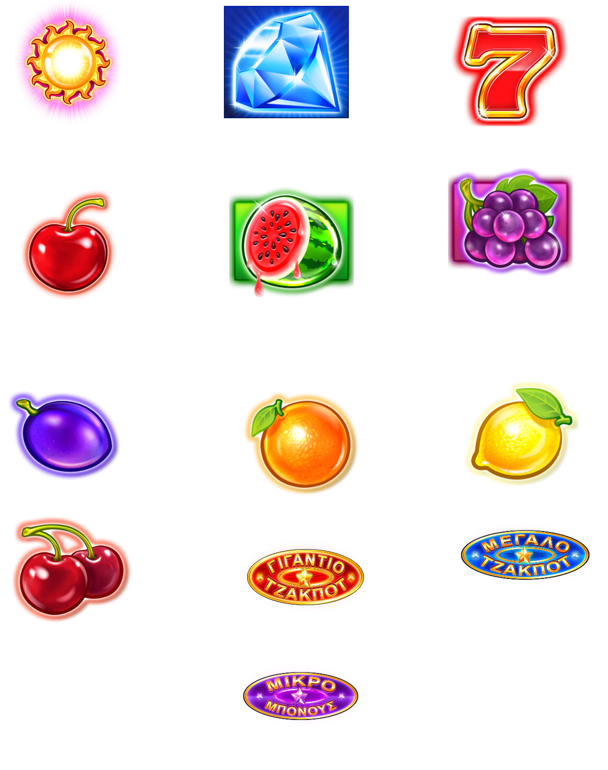 Δέκα,12 ή 15 φορές το συνολικό ποντάρισμα ή Διαμαντένιες Δωρεάν περιστροφές με 5-10 φορές το συνολικό ποντάρισμα, Μίνι ή Μικρό ως Μπόνους Ήλιου  ή Μίνι, Μικρό, Μεγάλο ή Γιγάντιο.