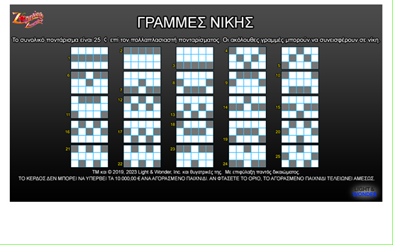 Το παιχνίδι παίζεται σε 25 γραμμές.
